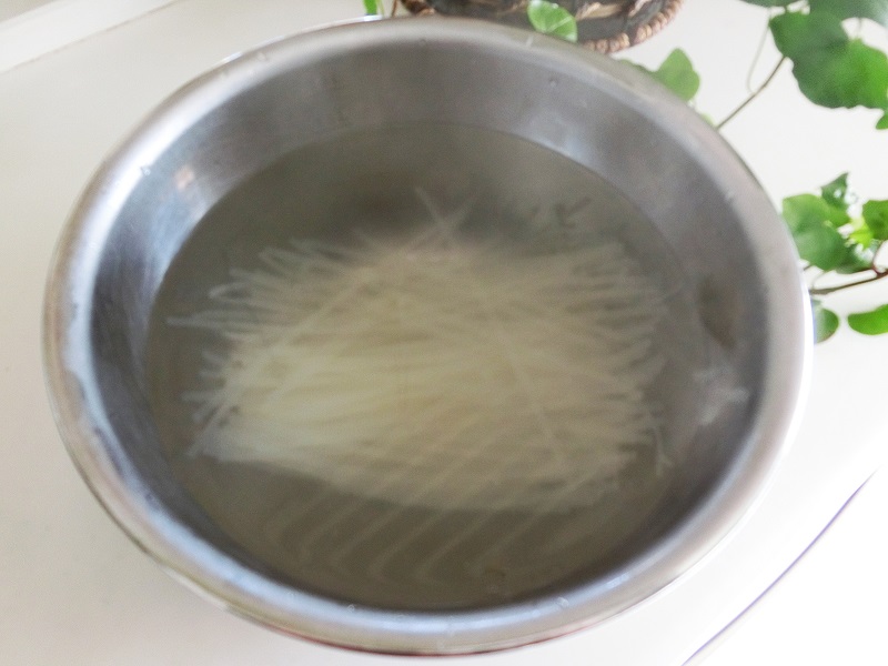 ※ 4分戻したセンレックは、アルデンテよりも固めですが、このくらいで大丈夫。